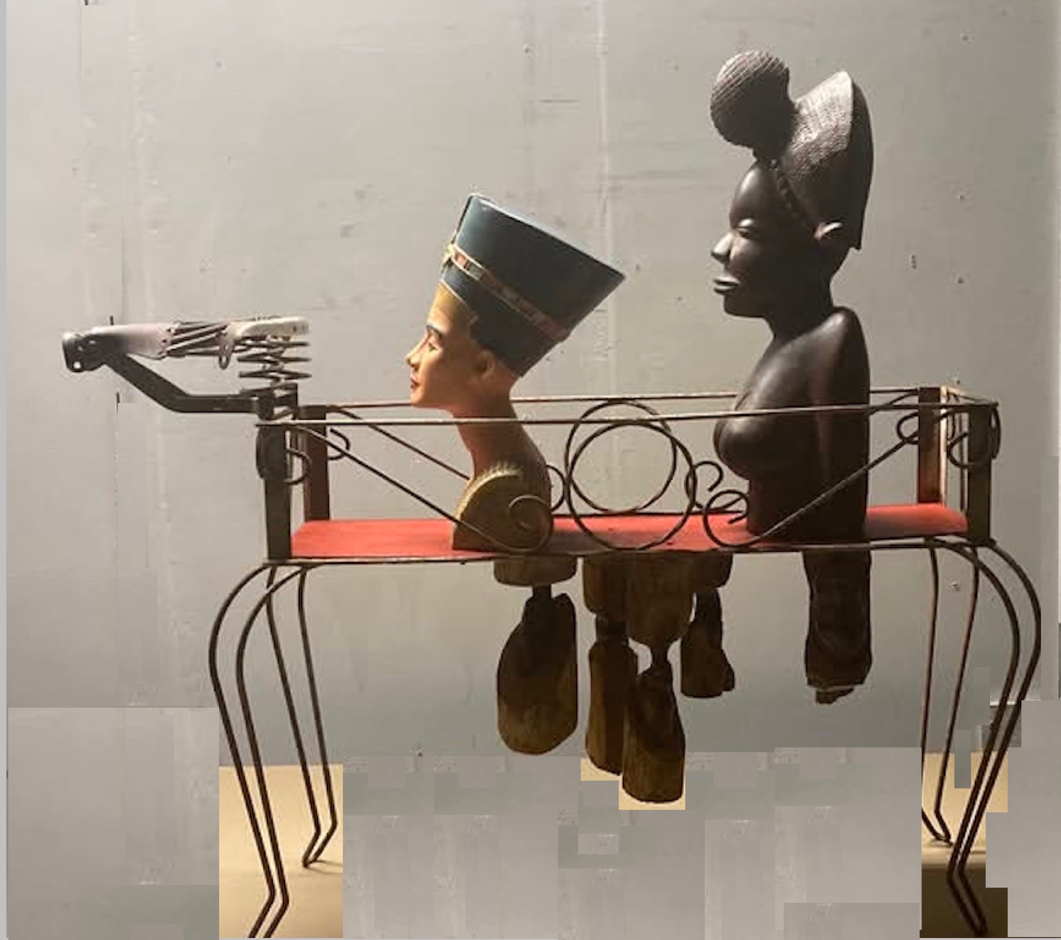 In de tentoonstelling zijn ook beschadigde beelden te zien die Renoult presenteert als een ‘voorstadium van herstel’. Je zou dit kunnen beschouwen als een vorm van The Repairshop. In een tijd waarin voormalige koloniën hun kunstschatten terugvragen, soms met klem, krijgt deze handeling een symbolische lading. De reparatie verwijst naar het verlangen om cultureel erfgoed, ook in de persoonlijke en huiselijke sfeer, opnieuw in ere te herstellen, hoe onvoltooid dat proces ook is. Dit onvoltooide repareren markeert een zoektocht naar herstel die zowel fragiel als noodzakelijk is.